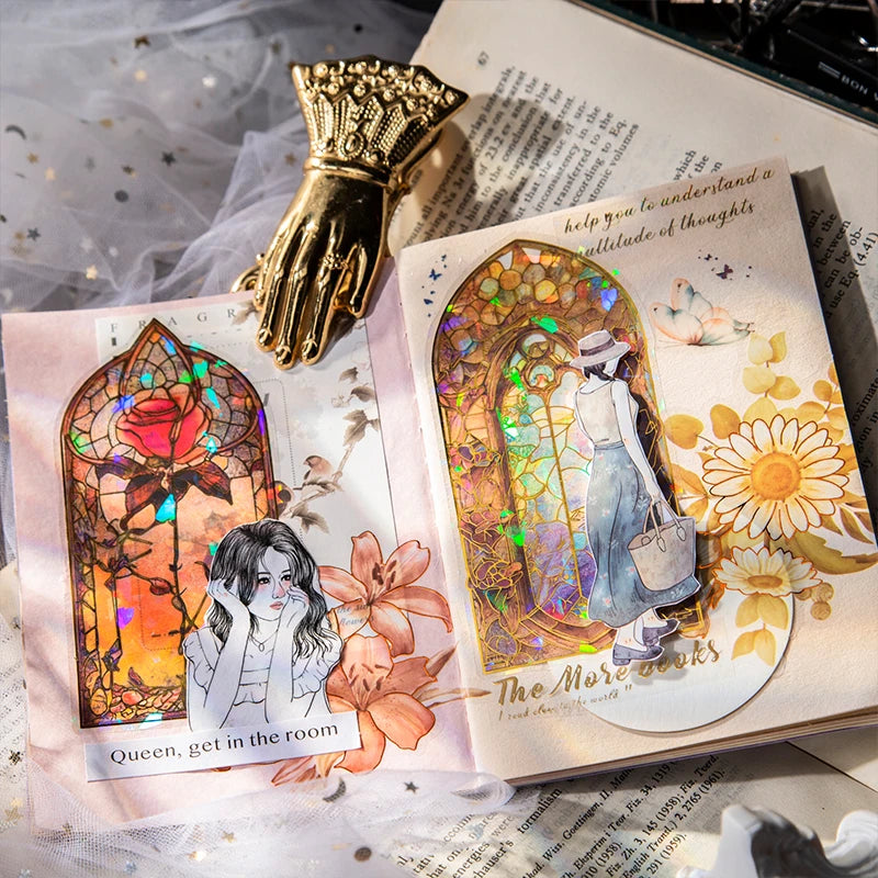 Featuring intricate, fantasy-inspired flower designs in shimmering gold foil, these stickers create a magical, storybook-like atmosphere in any room. Perfect for windows, journals, scrapbooks, or DIY decor, they're easy to apply and bring a touch of imaginative beauty wherever you place them.